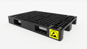 Paleta plastikowa ESD do bezpiecznego transportu i przechowywania delikatnych produktów elektronicznych.